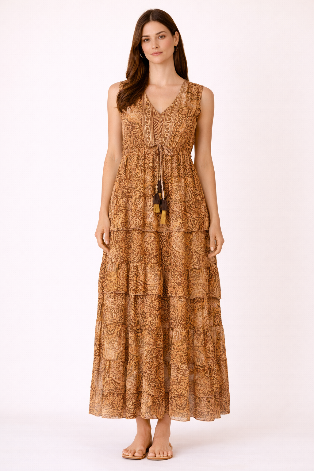Summer calls for fun and relaxation. Have both of them in your wardrobe by choosing the Paxoi long dress mosaic. This boho-style long dress with fine print will keep your style impeccable and your mood uplifted. Its carefully crafted design balances perfectly between elegance and playfulness while its lightwight silk fabric guarantees your comfort even during the hottest summer days. It comes in three different colors to choose from and fits perfectly almost every summer occasion at your holiday destination or the urban environment. Pair it with your favorite leather sandals and your loveliest smile.