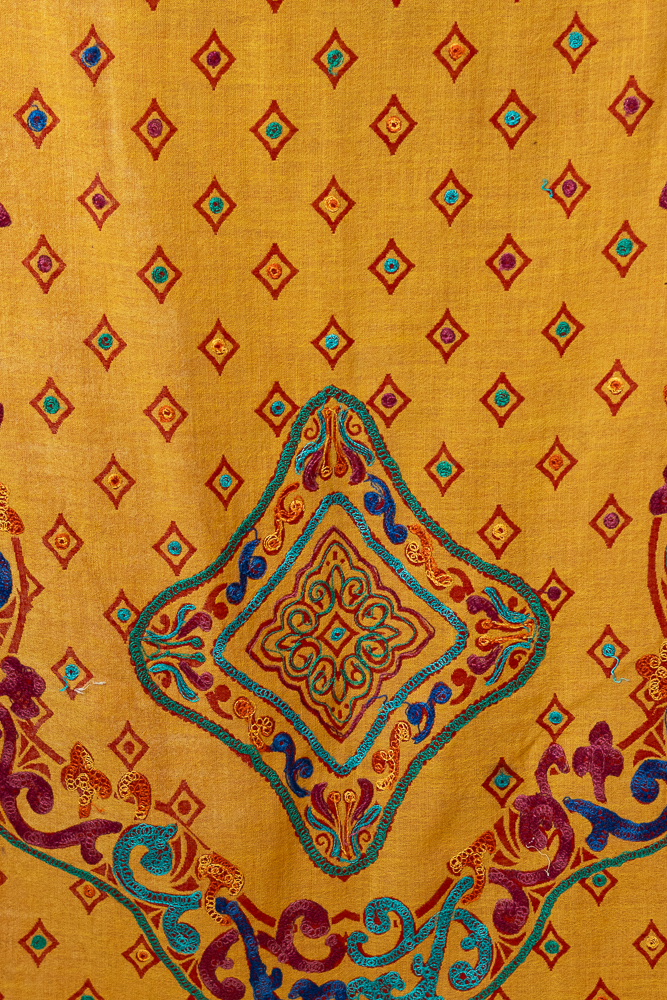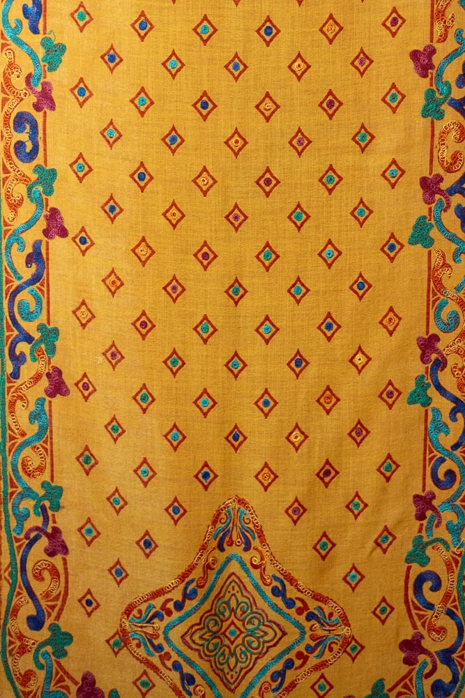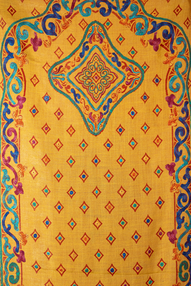 The embroidered border and central medallion motifs evoke heritage craftsmanship and timeless artistry, making this shawl perfect for both everyday elegance and special occasions.