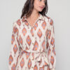 Graceful and effortlessly chic, the Shirt Dress in Flame Beige captures the essence of understated sophistication. Made from smooth and lightweight saree silk, this piece showcases the elegant Flame print, a soft geometric motif in warm neutral tones that radiates timeless beauty.