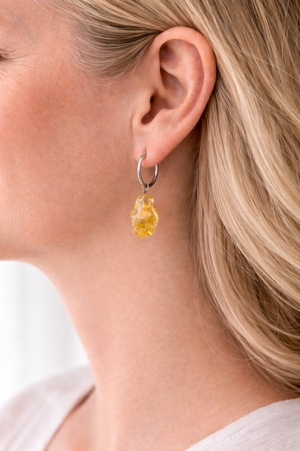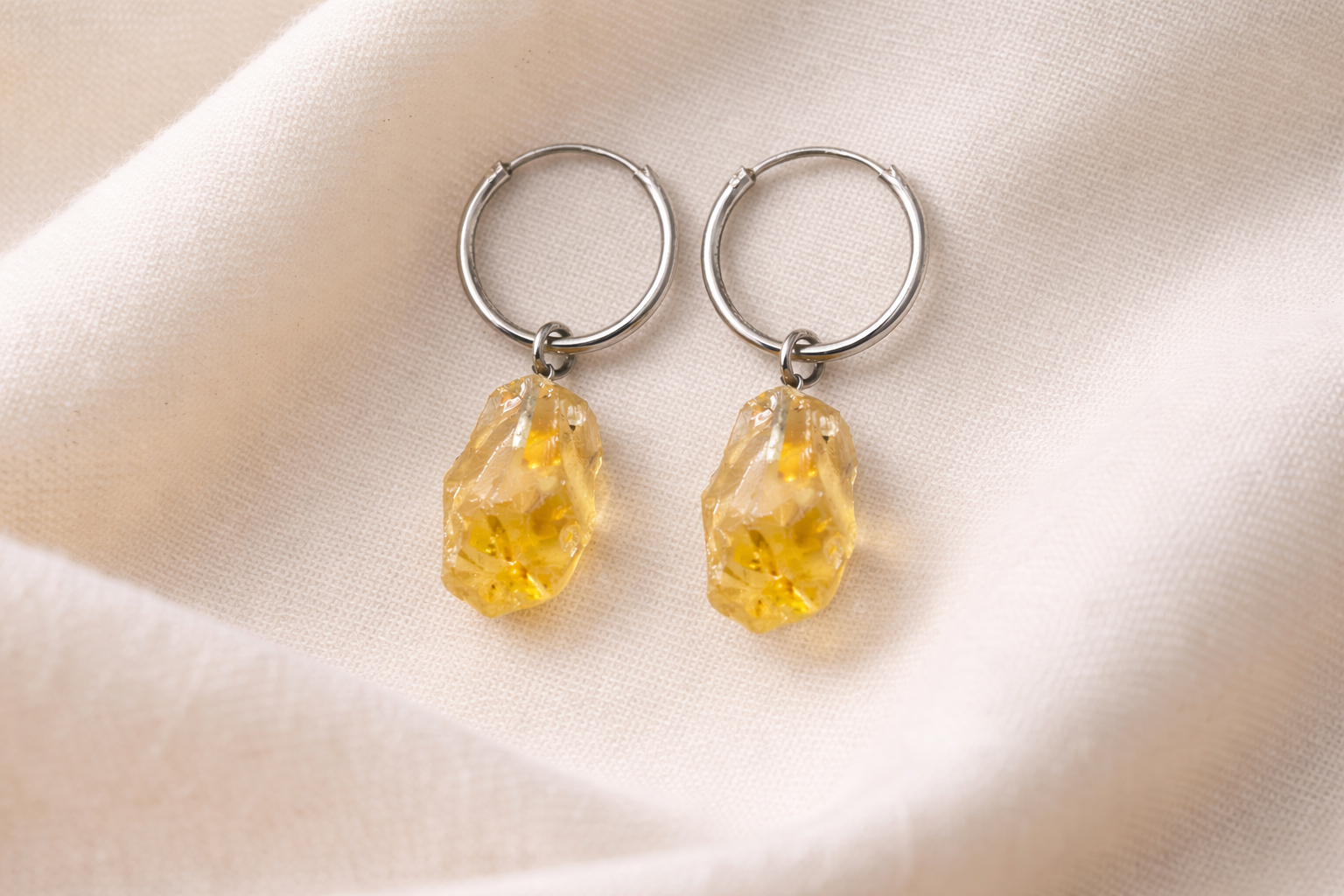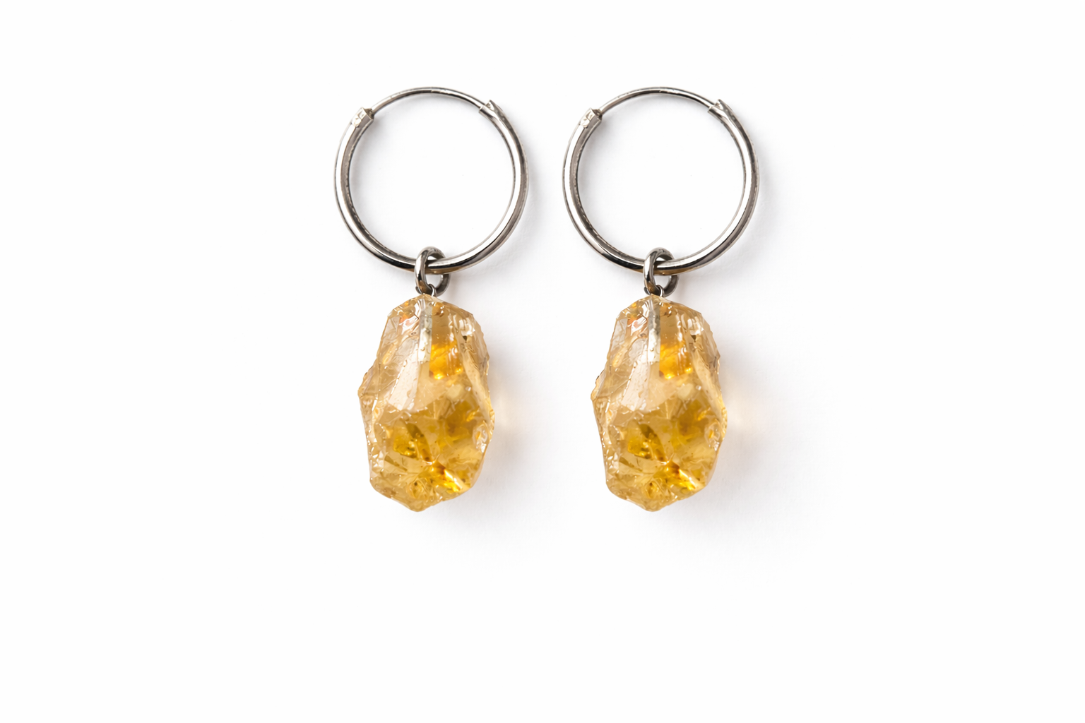 Sterling silver earrings featuring natural unprocessed citrine stones in their raw, organic form. Each stone is unique, with warm golden hues that catch the light beautifully and highlight the natural character of citrine.