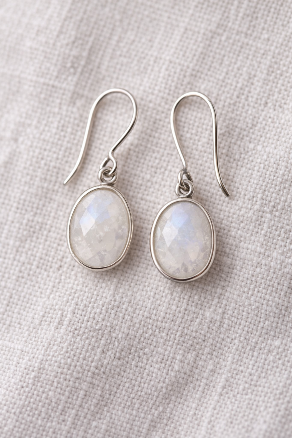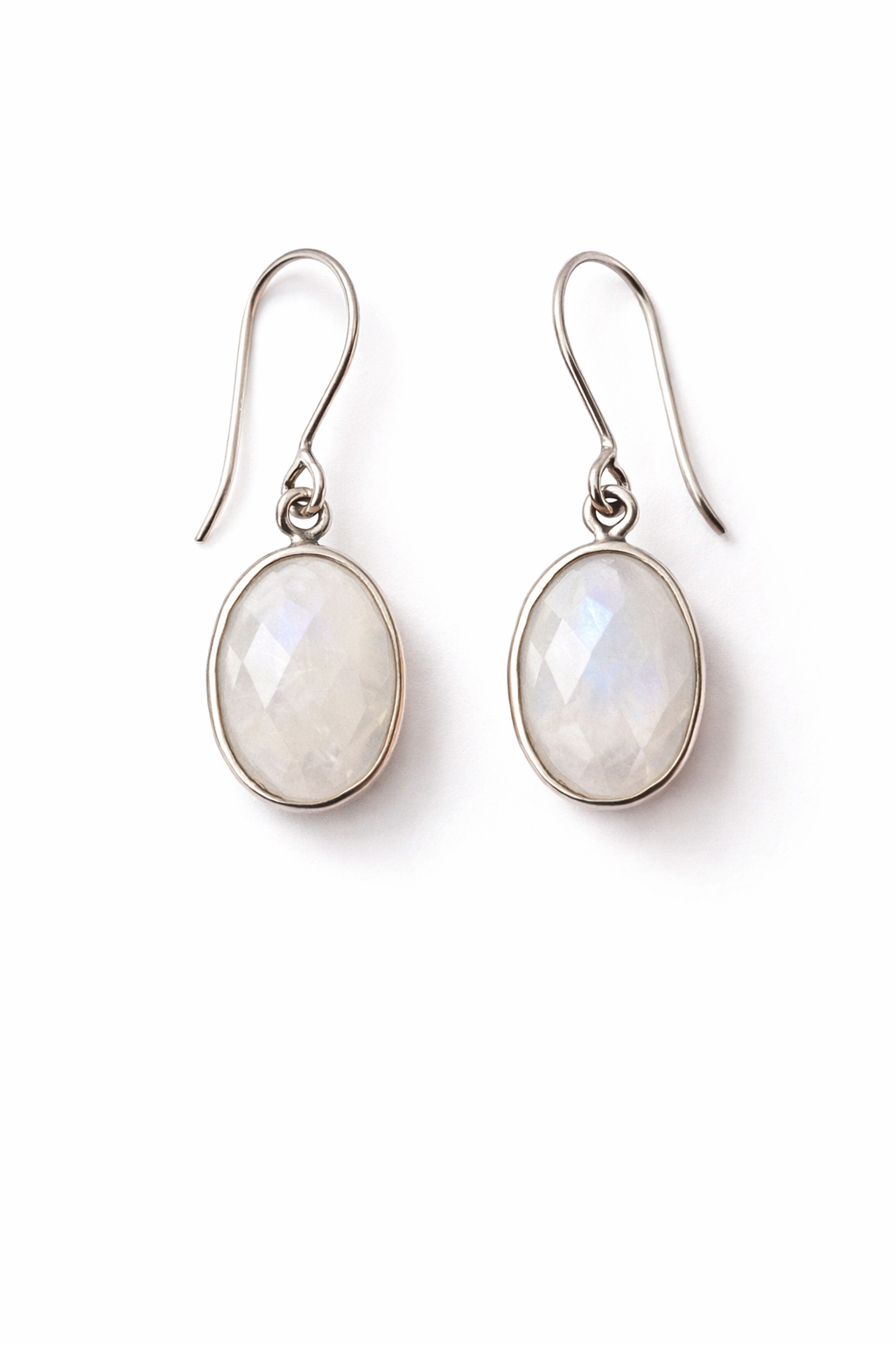 These sterling silver earrings with moonstone are designed to bring light, softness, and quiet elegance to everyday wear. Crafted from sterling silver and set with faceted moonstones, they reflect a gentle iridescence that changes subtly with movement.