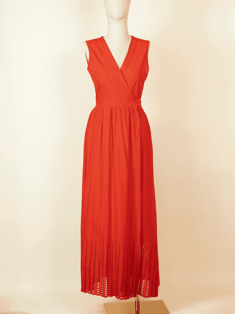 Syros wrap dress embroidery red