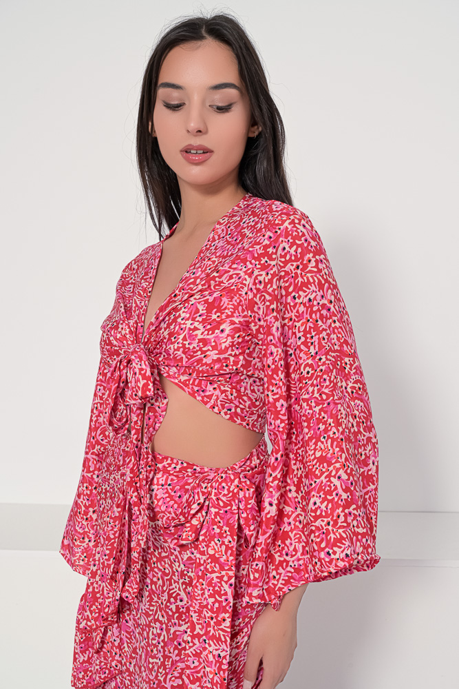 Tie top red ikat short sleeves