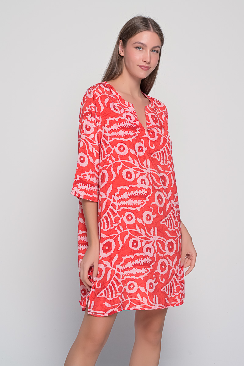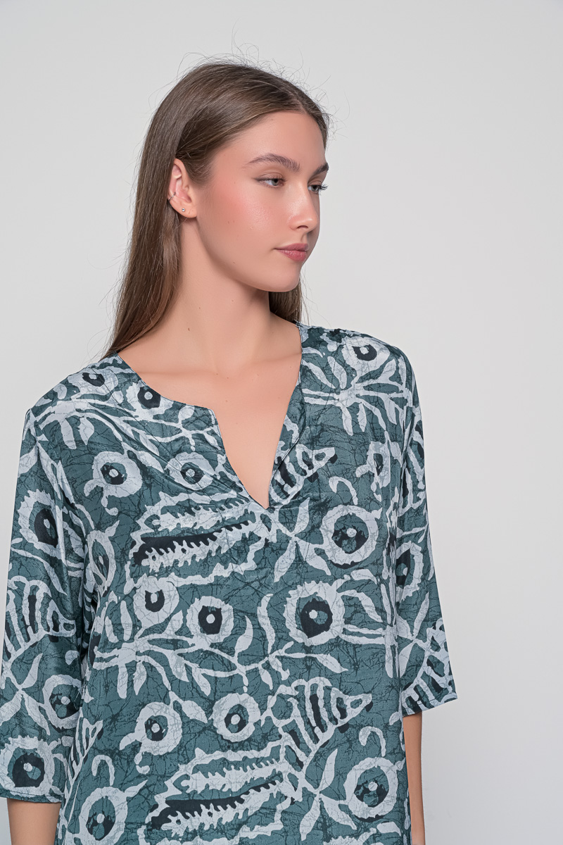 Summer is here and it’s time for endless strolls around the island enjoying the sun and the sea breeze. If you want to highlight your figure in the most elegant way, then this is the dress for you. The Titli tunic marble is a short straight caftan with a unique print and 3/4 sleeves that will protext you from the hot sun and keep you fresh all day long. Made from lightweight cotton fabric of high quality, it guarantees both your comfort and style.You can wear it as a tunic with trousers or as a short caftan dress. Combine it with your favorite sandals and ice cream flavor!