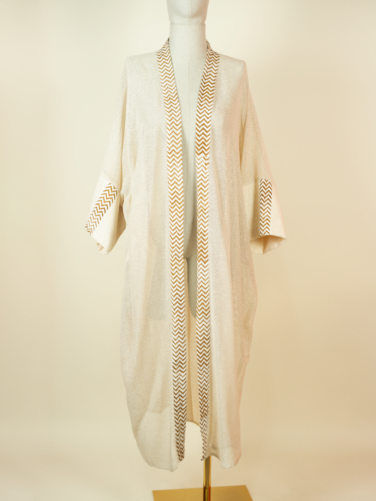 The relaxed silhouette allows for effortless layering, while the block print details add subtle character without overpowering the design. Worn open or loosely styled, it moves comfortably with the body and adapts easily to different looks and seasons.