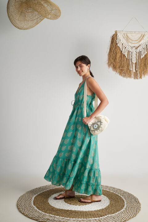 0854 Kali σετ φούστα με βολάν και κρουαζε τοπ πετρολ λαχούρι